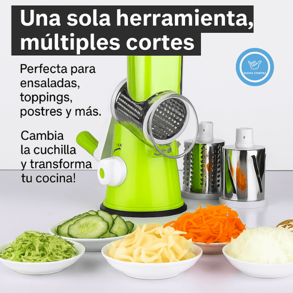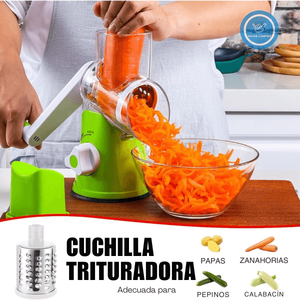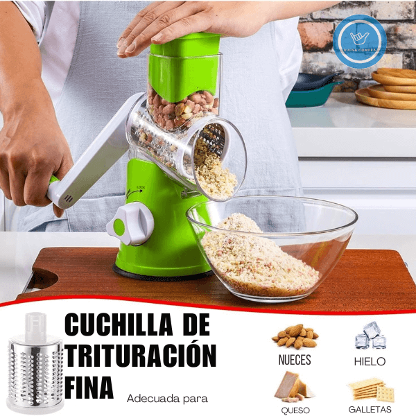 • Incluye: base con ventosa, 3 cuchillas, cuerpo principal, manivela