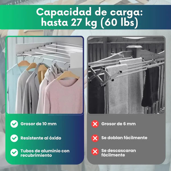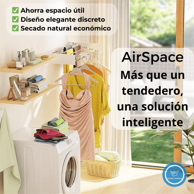 Los resultados pueden variar según el espacio y tipo de ropa. AirSpace está diseñado como una alternativa práctica y económica a los tendederos tradicionales y secadoras, sin promesas médicas ni absolutas.